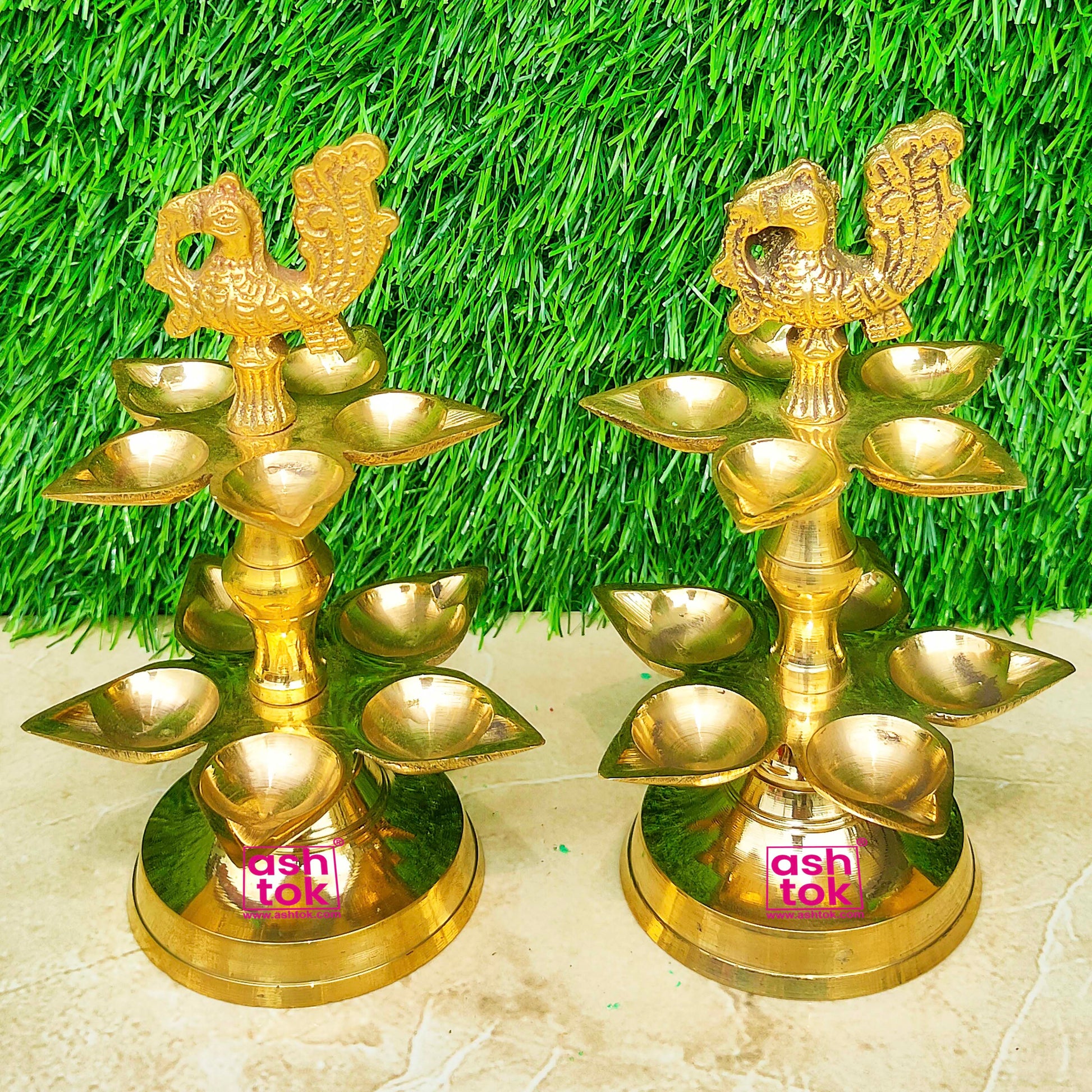 Best Quality Pure Brass Panchamahal 2 Step Peacock diya Set. Designed by Ashtok. We provide the most affordable prices and free shipping throughout India.