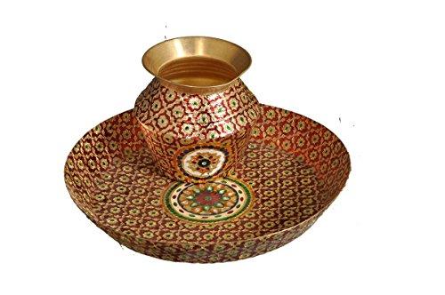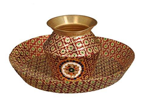 Brass Parat and lota set, Brass Plate and lota handcrafted meenakari design, Pooja thali Lota set for marrage gift item