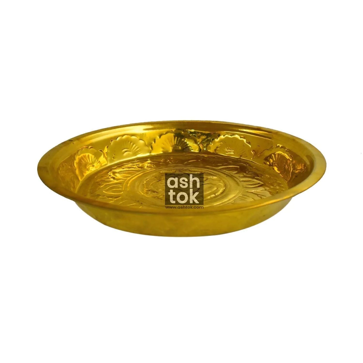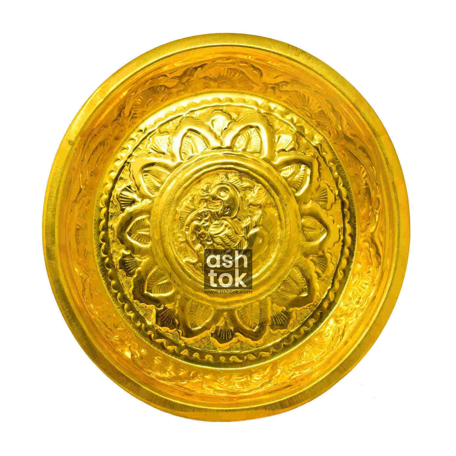 Brass Parat, Brass Plate handcrafted, Engraved Peacock Design, Pooja thali