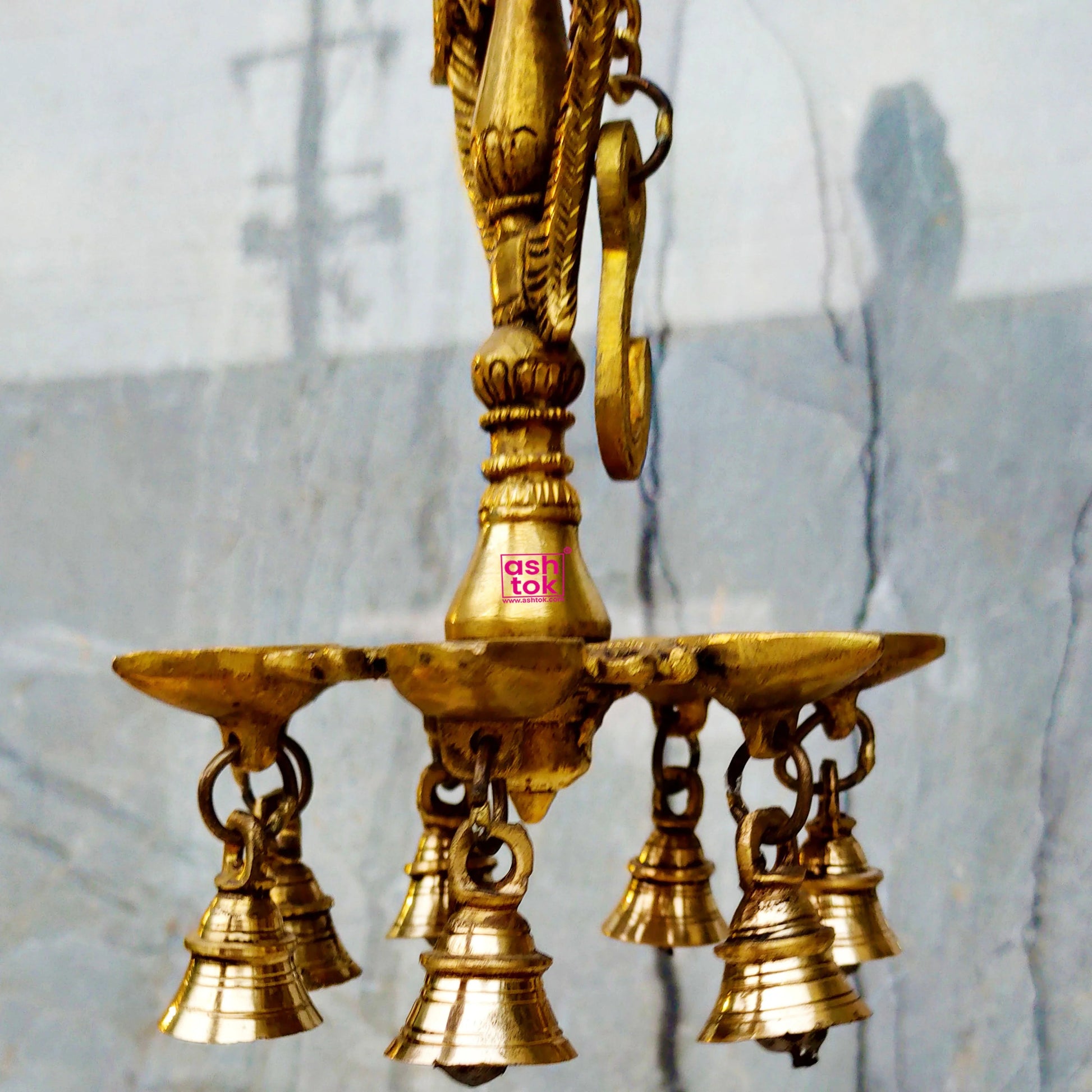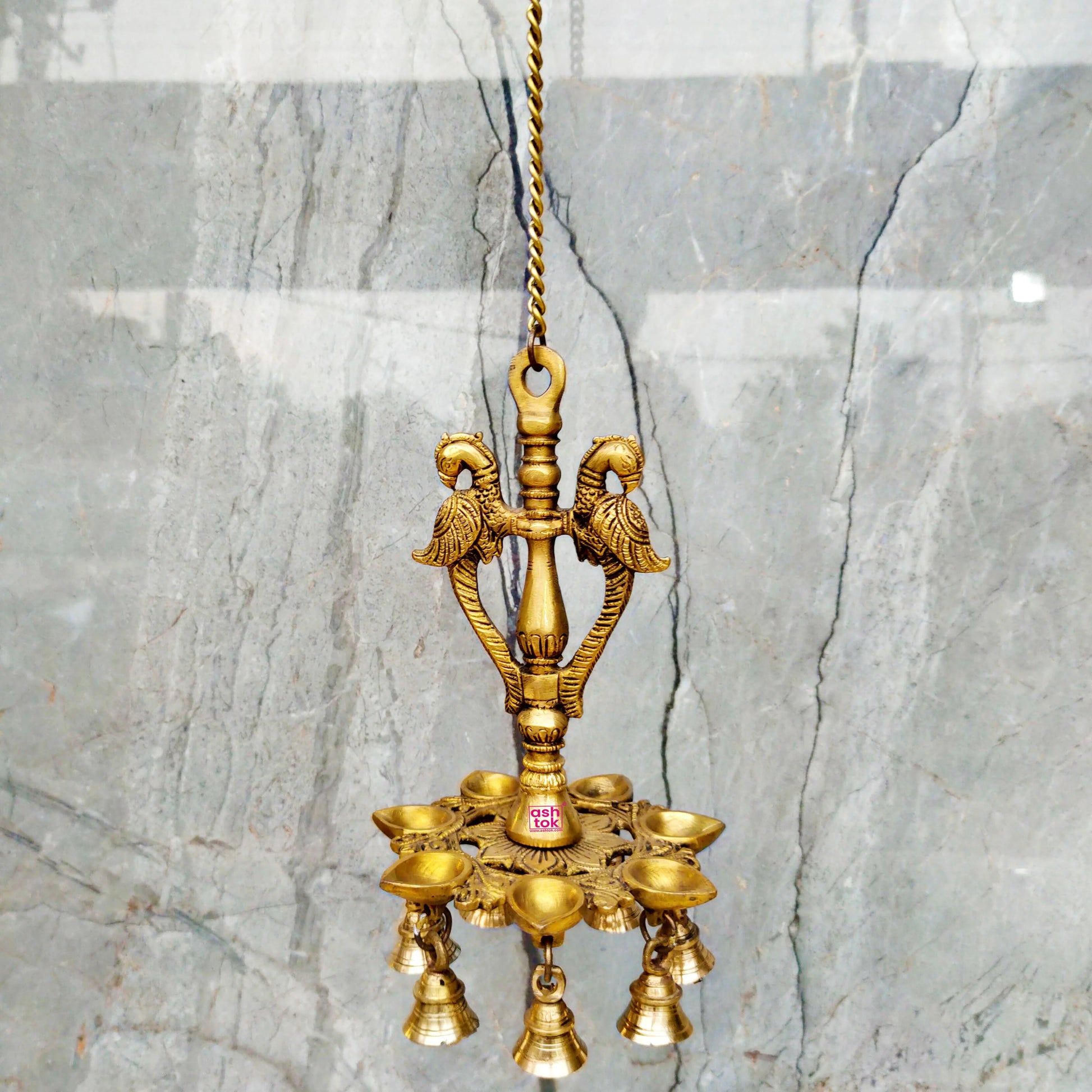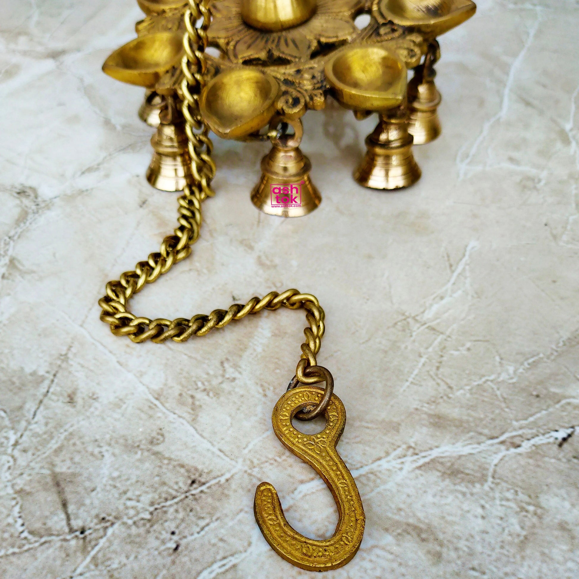 Product Details: The hanging diya is made of 100% pure brass and has an antique finish. This is a high-quality product that will last a long time. The antique brass polish and glossy finish give the goods a typically rich appearance. Beautifully carved pure brass diya. This product may be used as a lighting diya on a regular basis to swiftly disseminate the oil, making it excellent for pooja room hanging diyas and lovely home decor. The best wedding gift, birthday gift, anniversary gift, newborn baby gift, housewarming gift, gift item, and gift for any occasion.