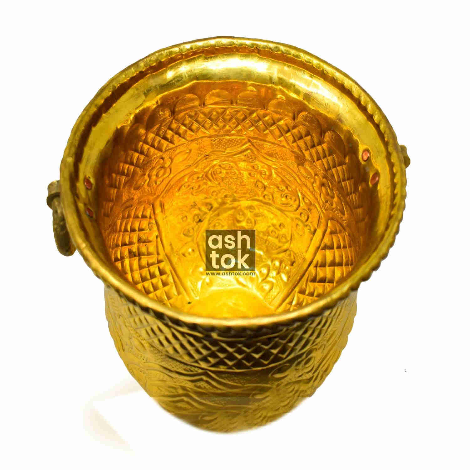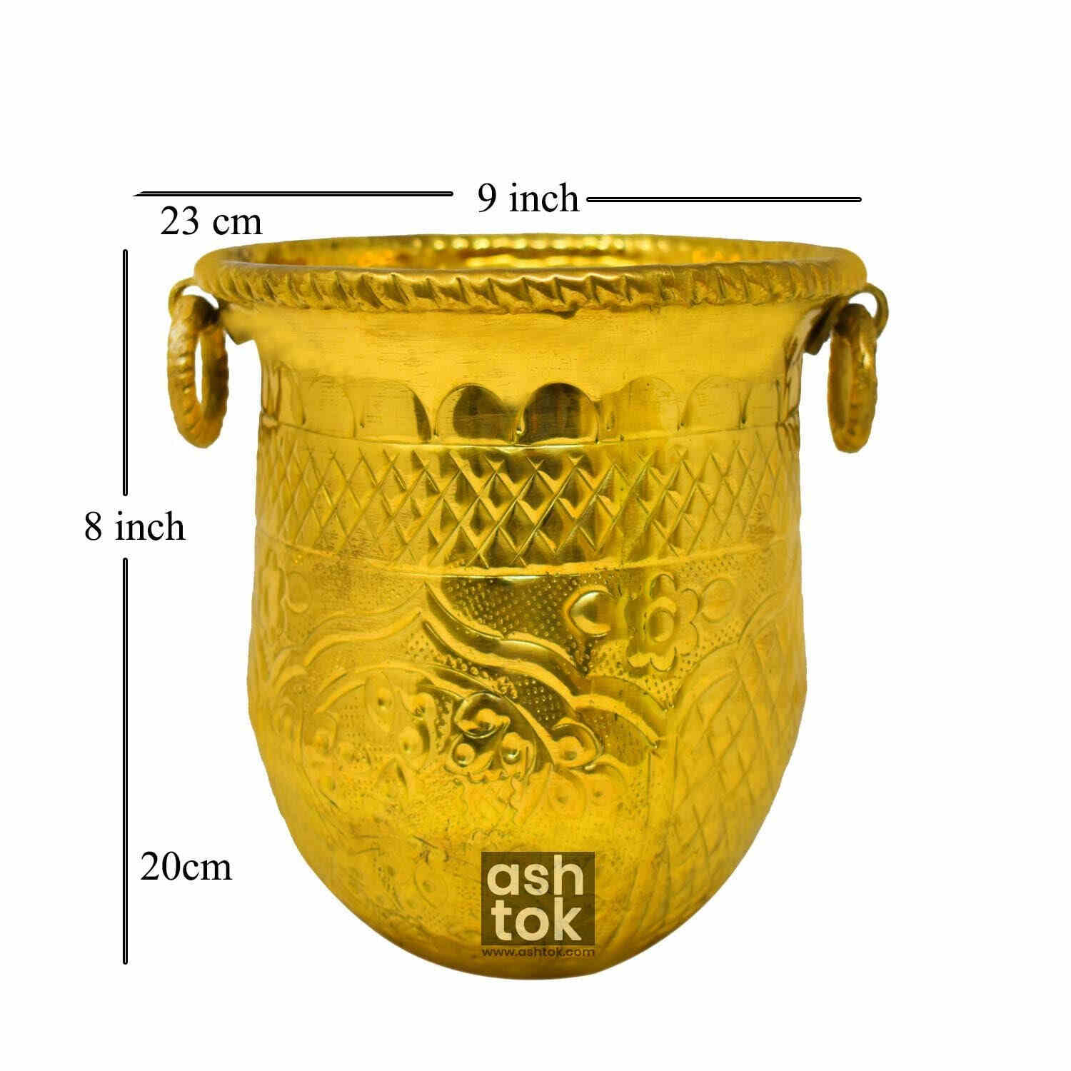 Product Details: Brass Planter is an antique molded planter with a round design. It has an etched pattern with pie crust borders all around it. On both ends of the planter, there are two rings that may be used to simply raise the planter. These rings are constructed of brass as well. Ideal for growing indoor and outdoor plants in the home or office. Its antique aspect enhances the overall appeal of the place. The planter is unique in that it includes an etched pattern on the inside as well. It is the ideal present for any occasion, but especially for housewarming parties.