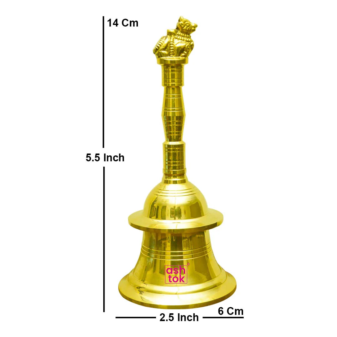Brass Pooja bell, Brass pooja hand bell, Pooja Bell Online, Brass Hand Bell (Height 3 Inches)