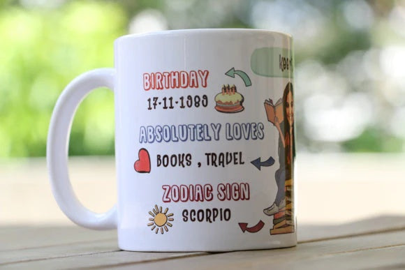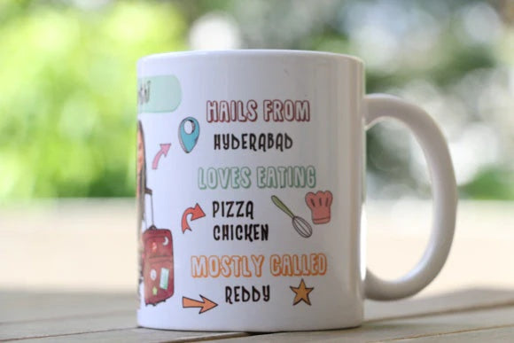 2. A mug customised with all the things which define the special person such as their favourite food, place of origin, nicknames, etc.