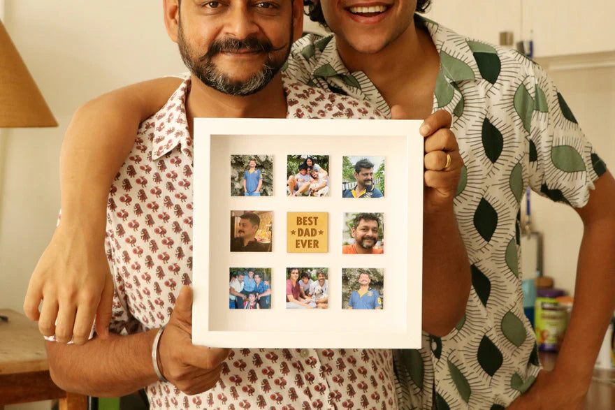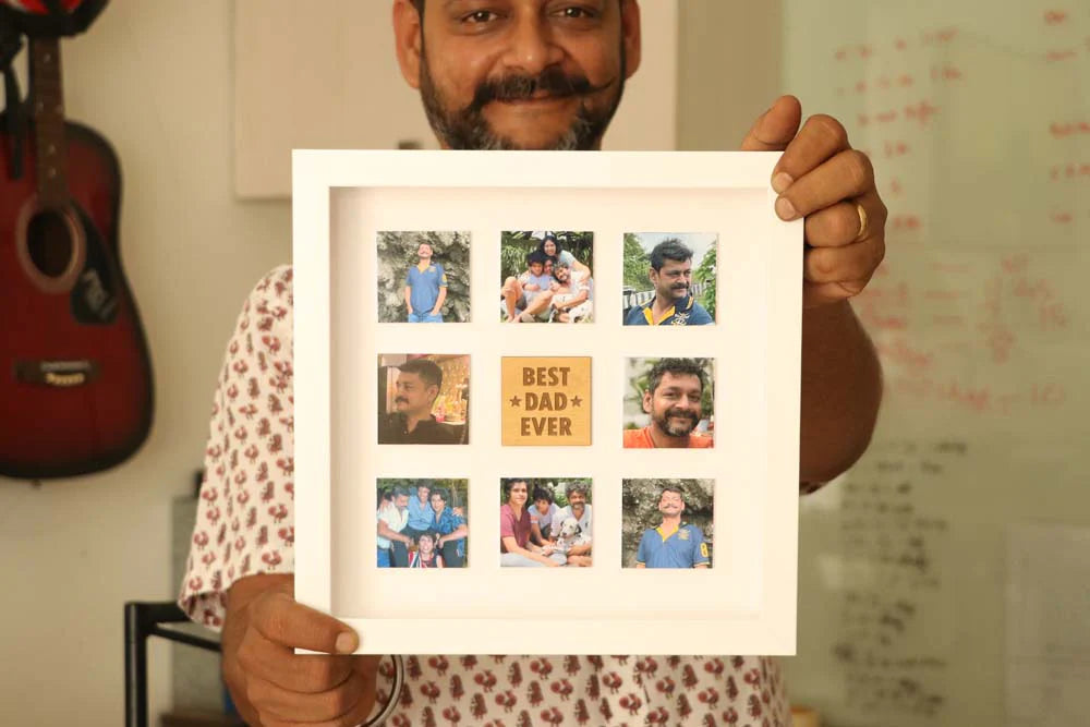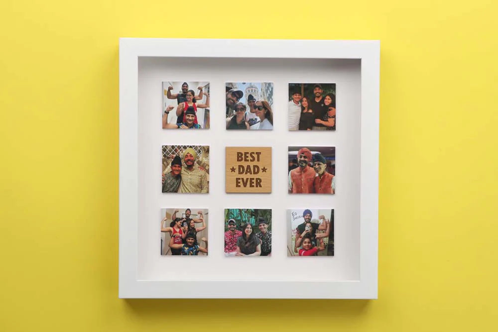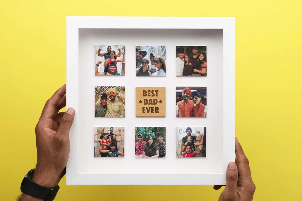 This unique gift for fathers is customized with 8 photos. They can be shared in the order form after the payment page.