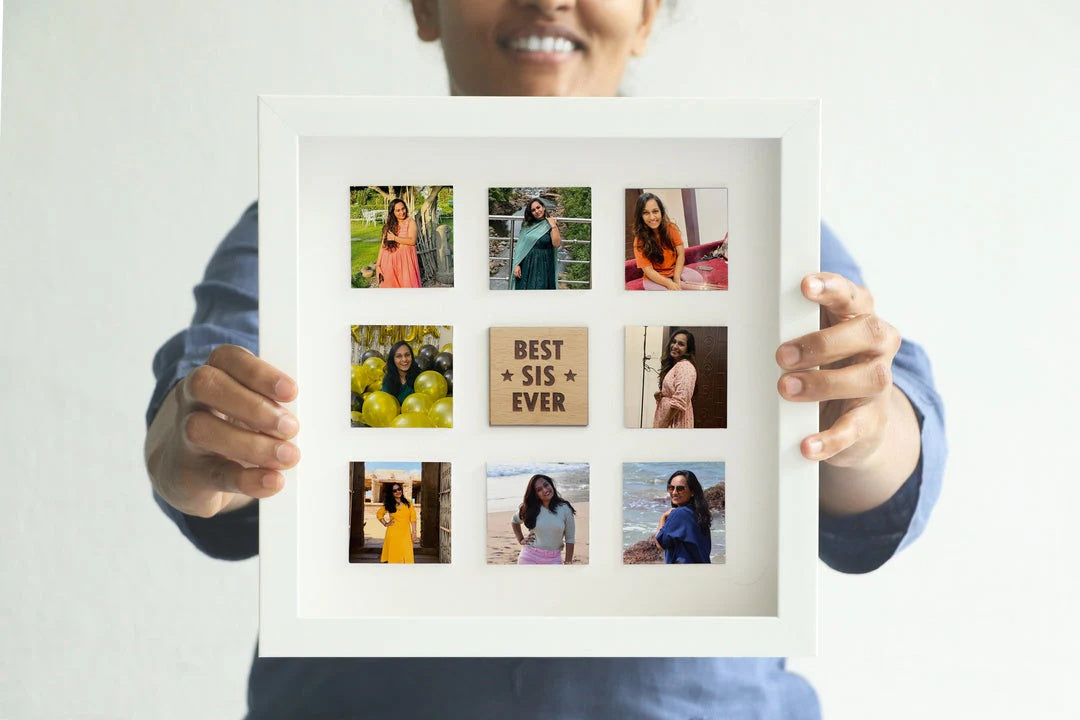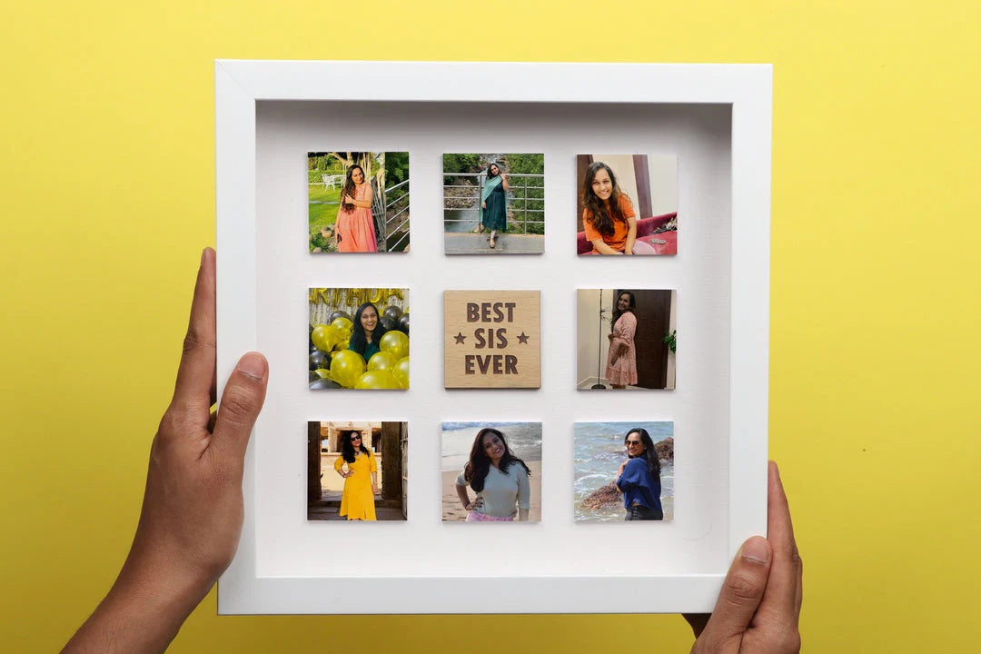 This unique gift for sisters is customized with 8 photos. They can be shared in the order form after the payment page.