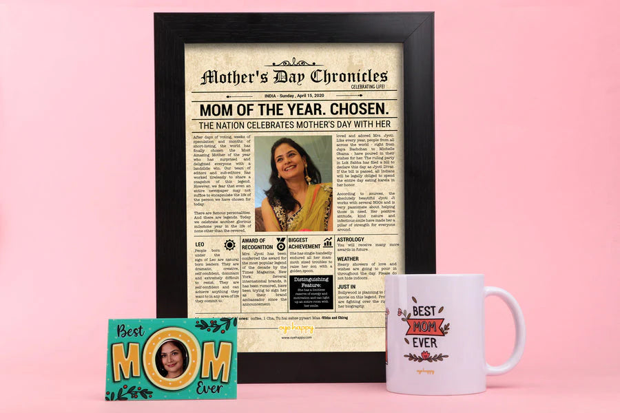 A newspaper cover story written entirely for your mom on the occasion of mother’s day. Based on her nature, likes, and interests, the article can be entirely themed around her. The completely customized gift will comprise her sun sign, Kids' names, and lots more.
