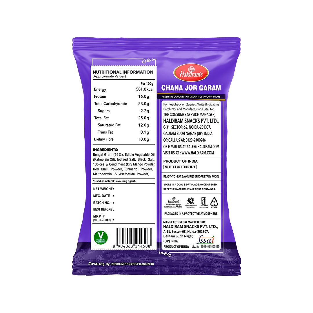 Bengal Gram (65%), Edible Vegetable Oil (Palmolein Oil), Lodised Salt, Black Salt, *Spices & Condiment (Dry Mango Powder, Red Chilli Powder, Turmeric Powder, Maltodextrin & Asafetida Powder).