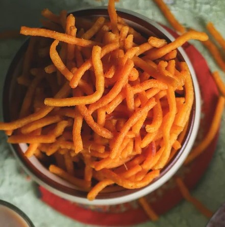 Rice Flour, Refined Flour, Potato, Salt, Refined Groundnut Oil, Butter, Red Chilli Powder, Spices, Black salt Powder