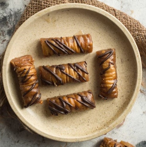 Chocolate Finger baklava twists the traditional with a chocolate-infused nut filling, wrapped in filo pastry fingers and lightly drizzled with syrup.