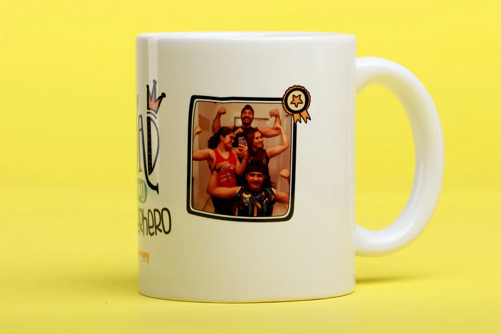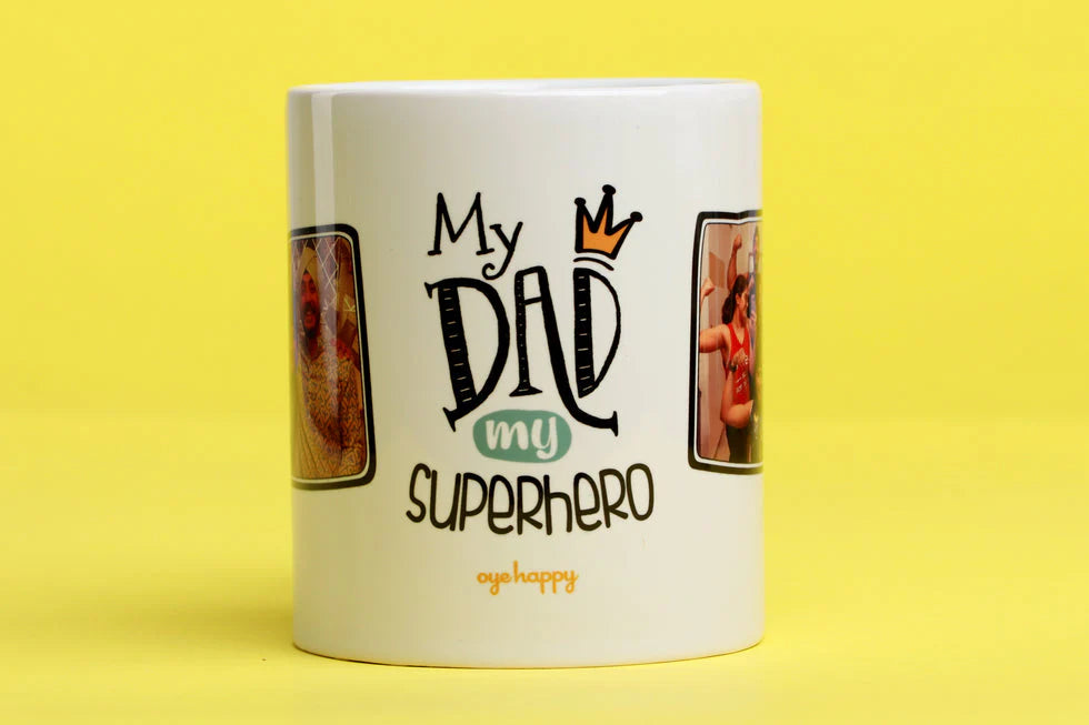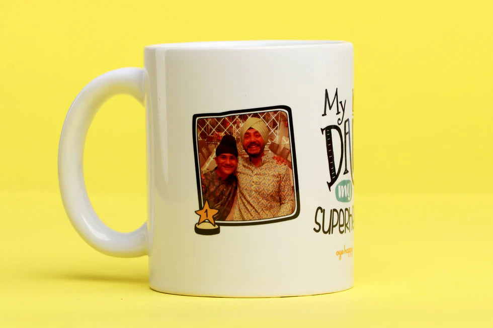 A mug to remind your Dad that he is your superhero. The mug is customised with two of his best pictures.