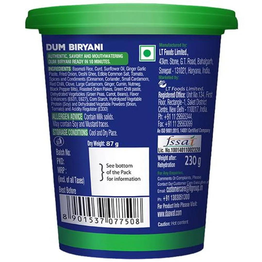 Daawat Cuppa Rice Dum Biryani - Ready To Eat - 87g