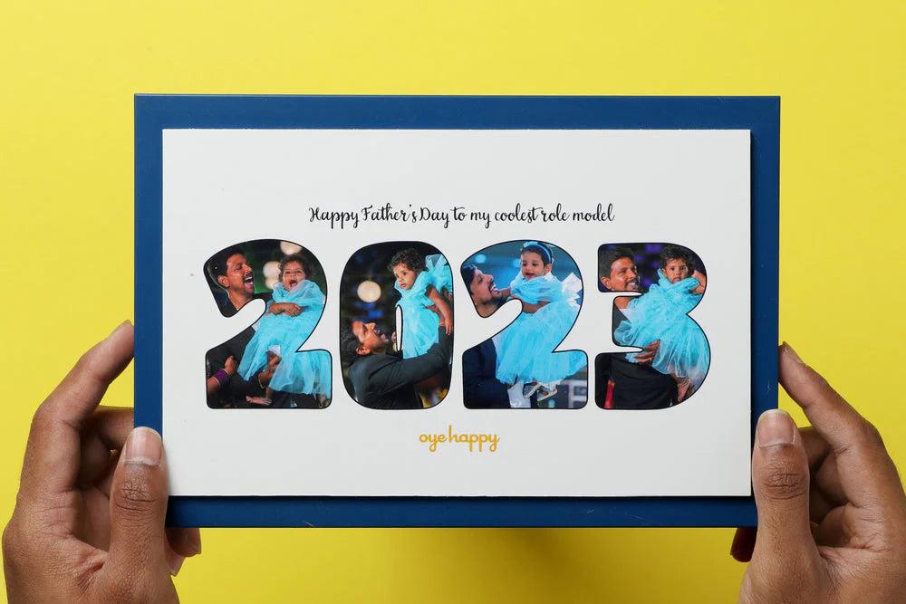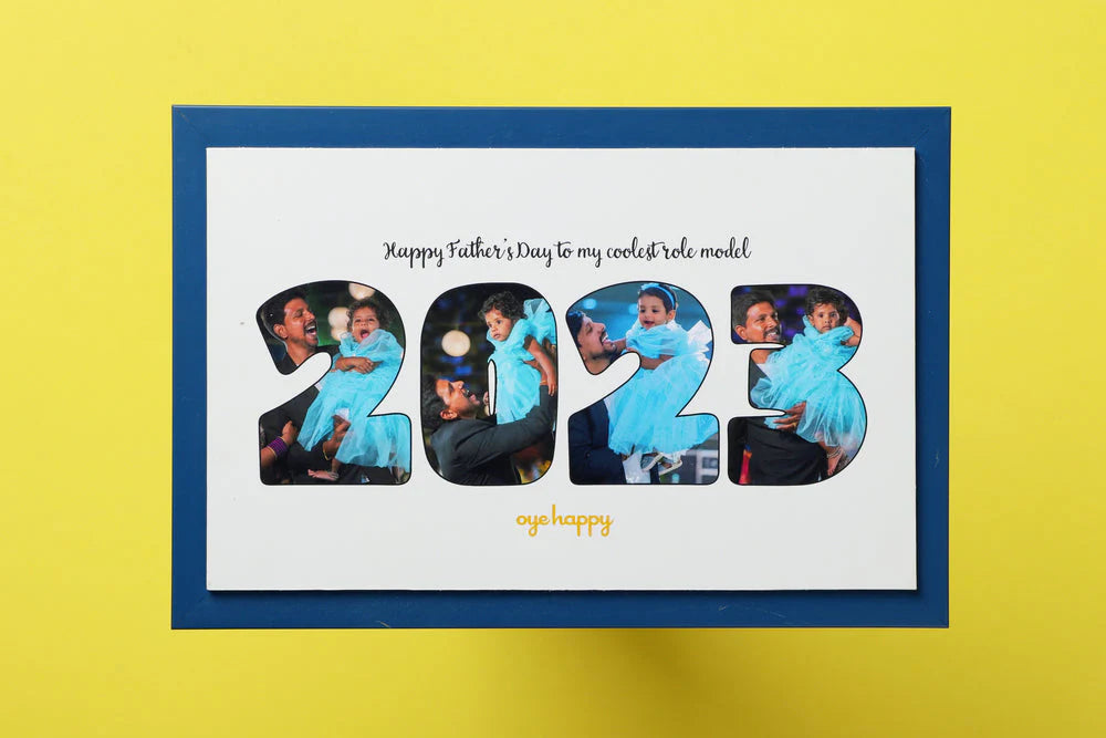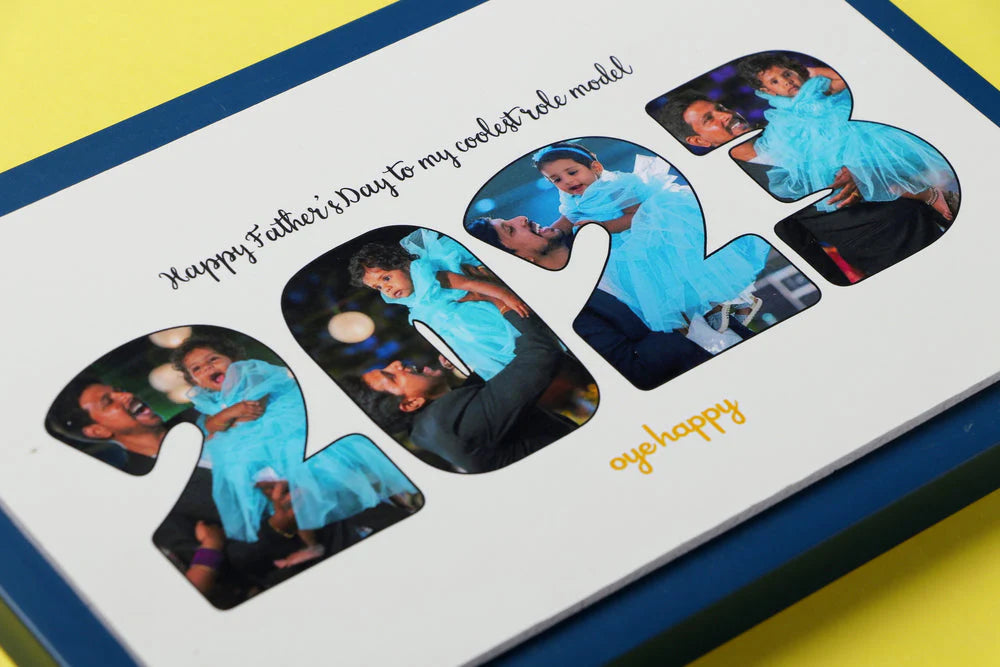 This gift for fathers is customized with 4 photos, a one-liner message and the special year. They can be shared in the order form after the payment page.
