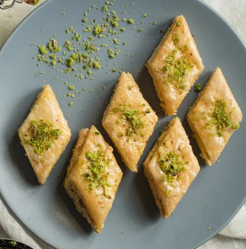 Diamond Baklava cuts traditional baklava into diamond shapes, offering a classic taste with layers of nutty filling and sweet syrup.