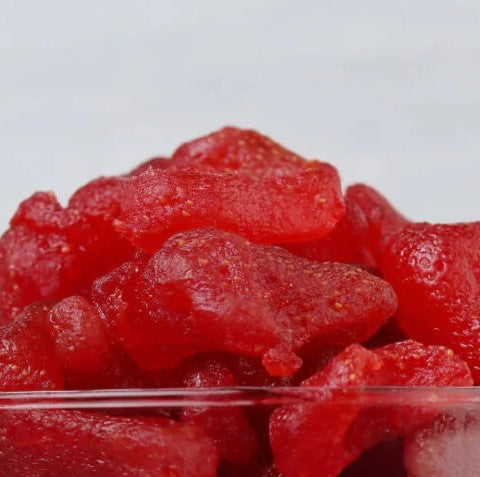 Strawberries contain no additives, preservatives, or sweeteners and are a source of manganese, folate, and potassium and are a source of vitamin C. Enjoy these berries, which are bursting with natural strawberry flavor, as a healthy snack while you’re on the go, in dried fruit muffins or fruit compote or on your favorite morning meal.