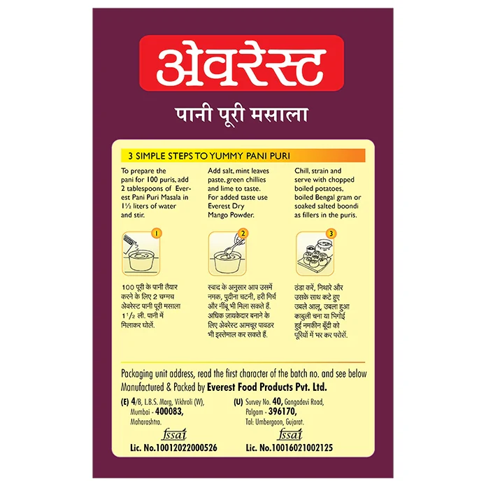 Prepare the Pani: Add 2 tablespoons of Everest Pani Puri Masala to 1.5 litres of water.