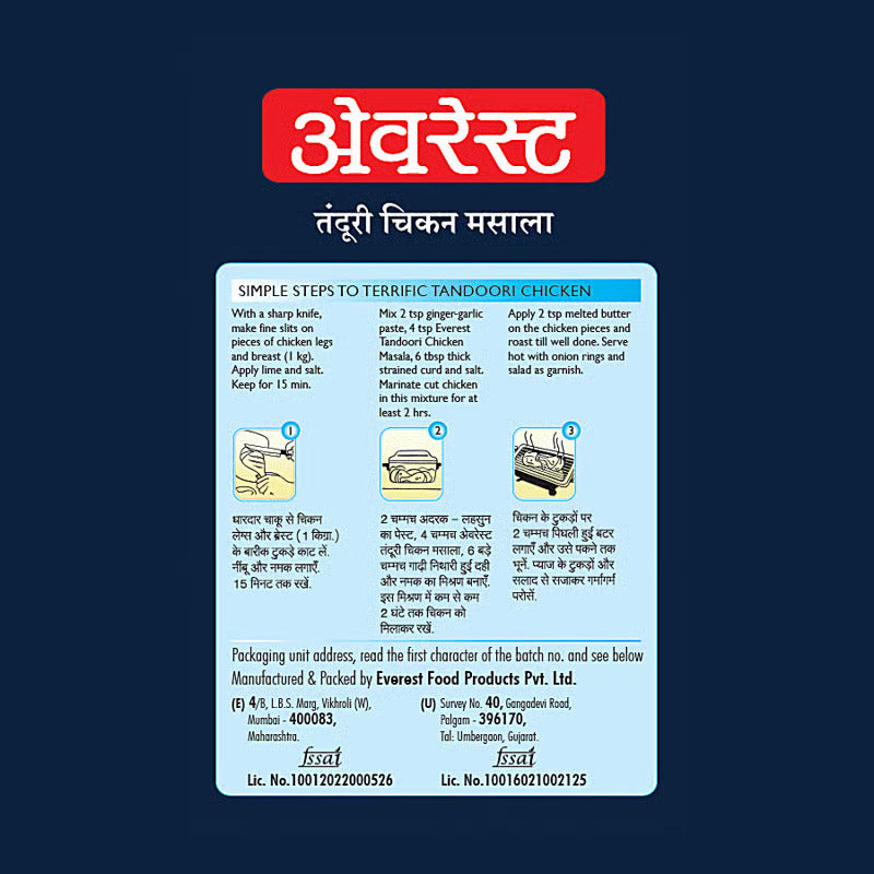 Mix the Marinade: Combine 2 tsp ginger-garlic paste, 4 tsp Everest Tandoori Chicken Masala, 6 tbsp thick curd, and salt.