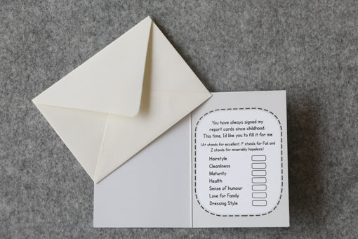 You have always signed my report cards since childhood. This time, I'd like you to fill it for me.