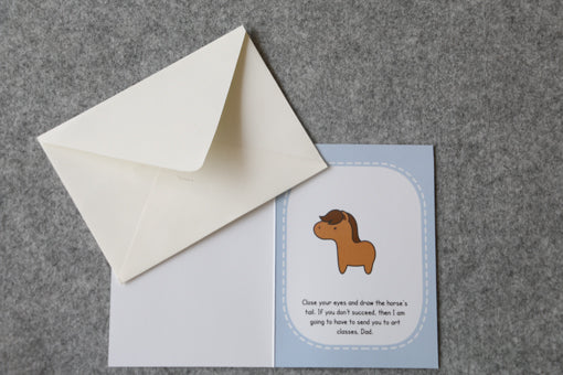 Close your eyes and draw the horse’s tail. If you don’t succeed, then I am going to have to send you to arts classes