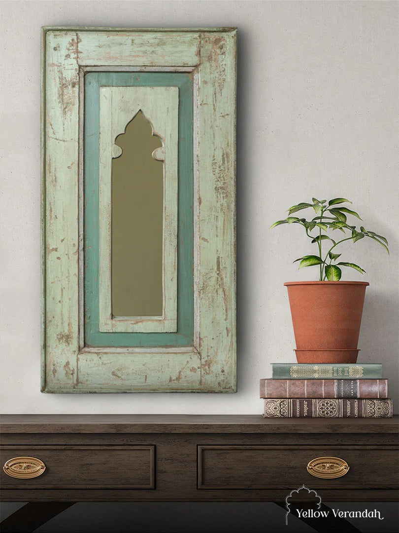 Design a magical story of heritage India on your favorite wall. Collected from Rajasthan, this Antique Mirror is serene reminiscence of Jaisalmeri Haveli & Fort architecture.