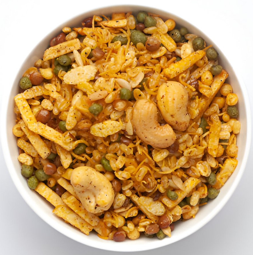 Kaju Mixture is a rich and crunchy snack blend featuring roasted cashews, spicy sev, fried lentils, and traditional Indian spices. This gourmet mix offers a perfect balance of flavor and texture for festive occasions or everyday indulgence.