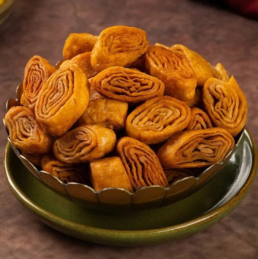 Enjoy the layered crunch of Khara Khaja — a golden, spiced treat that pairs beautifully with chai or satisfies solo cravings.