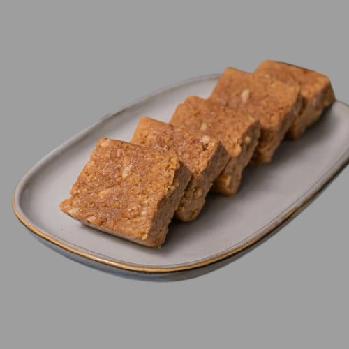 Kismis (raisins) are nothing but dried grapes and are widely used in garnishing Indian desserts and sweets. The kismis kalakand, however, uses kismis as a main ingredient in the cooking process, giving a fruity flavour to the kalakand (milk sweet).The kismis-khoya mix cooked in pure ghee for a smooth texture and the kalakand is topped with nuts to give it a delicious and crunchy finish! Order and experience happiness, brought to you with love from Vellanki Foods!