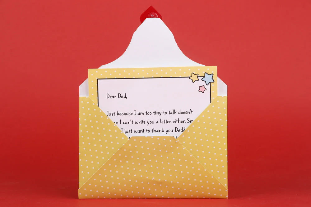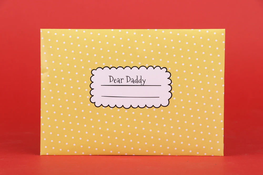 The letter is packaged in an envelope with “Dear Dad” printed on it.