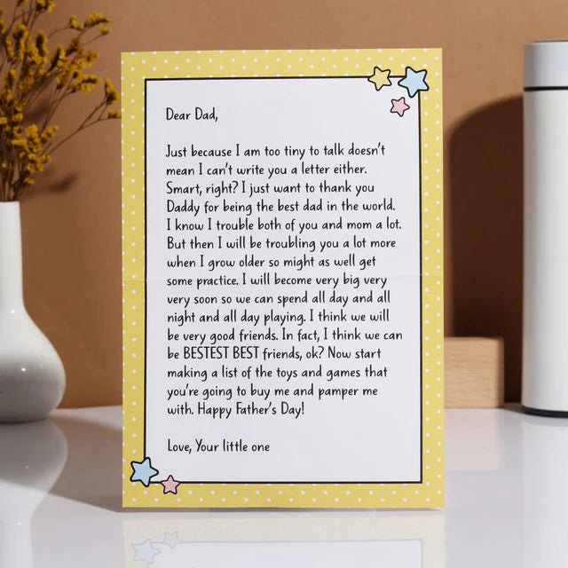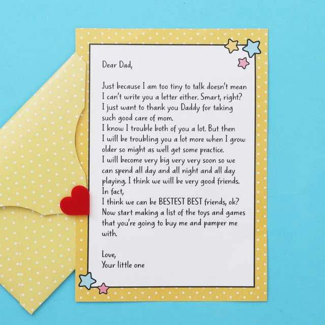 Want to surprise a new dad who can’t stop being excited about the baby? Gift him an outrageously cute letter written by his little baby!