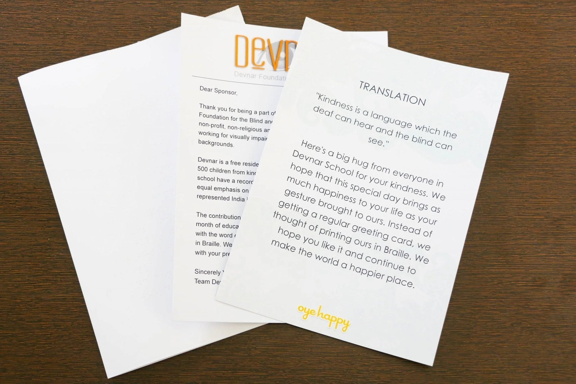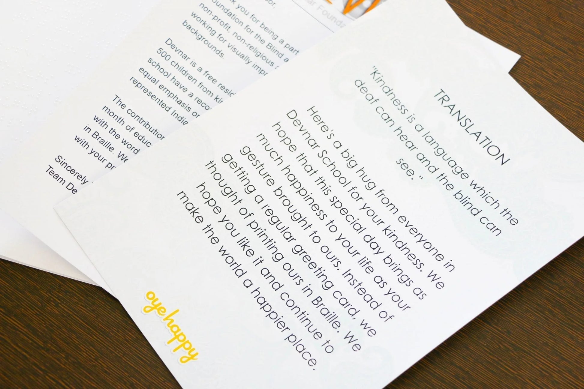 - In return for the noble gesture, a thank-you card printed in braille will be delivered to the special person. The translated version of the content will also be printed in the card. It will be complimented with an official letter from the NGO authenticating the receipt.