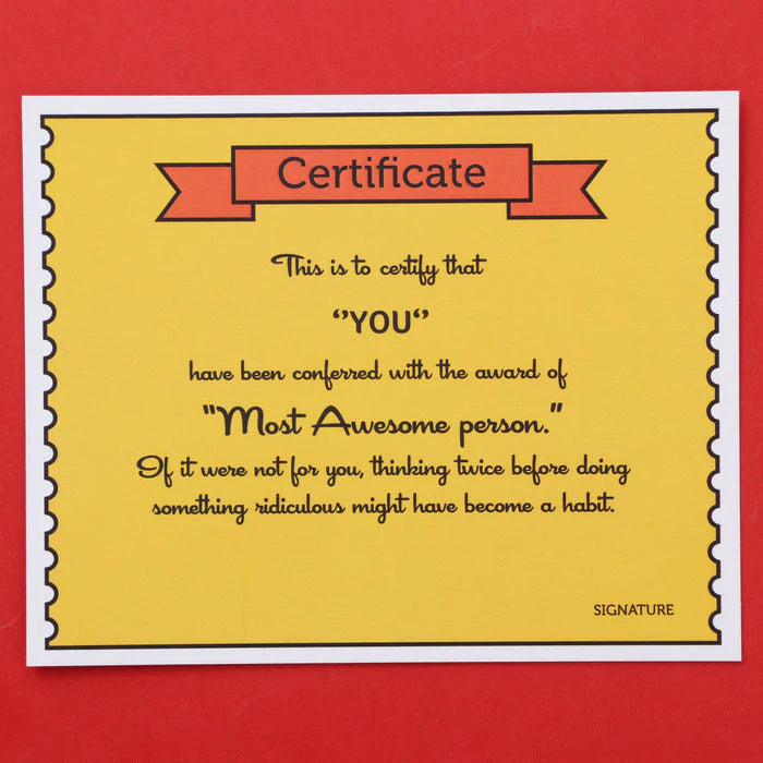 The special person will also find a certificate for being the most awesome person on Earth.