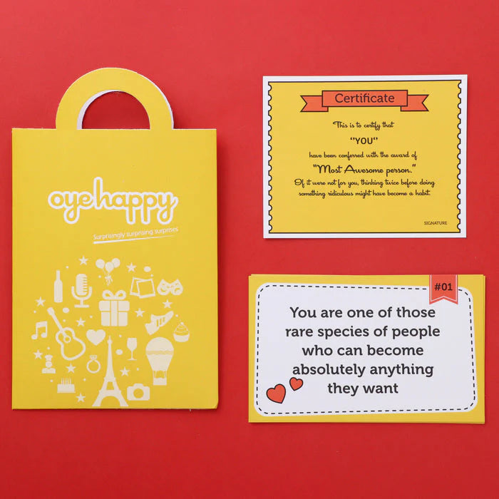 Grab this surprise of five adorable placards in a pouch that express everything you want to. There is also a specially created gift in the end to bring a wider smile on their face.