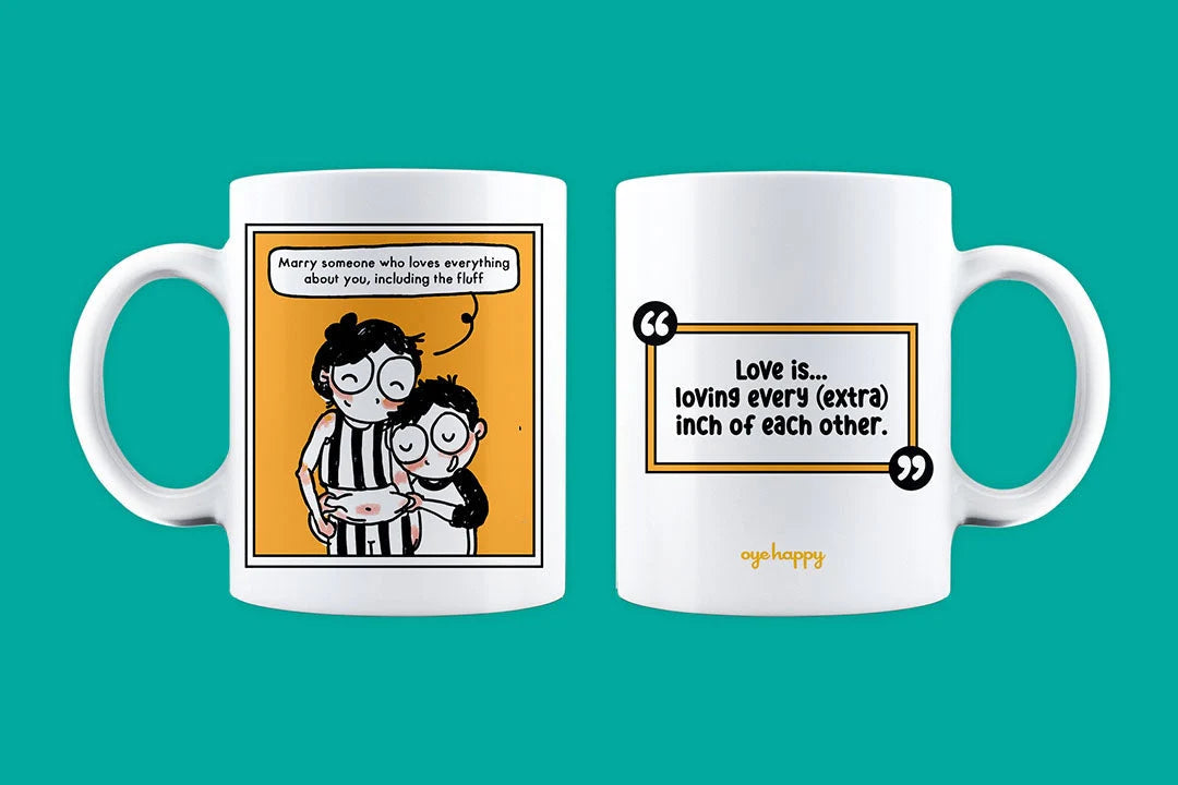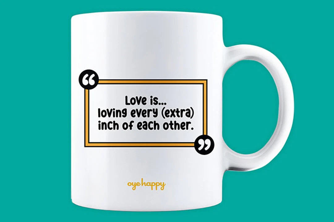 The mug has the cutest illustration of a couple with the message: Love is… loving every (extra) inch of each other. Isn’t it just aww-dorable? Adorable enough to be the best anniversary gift or the most romantic gift ever!