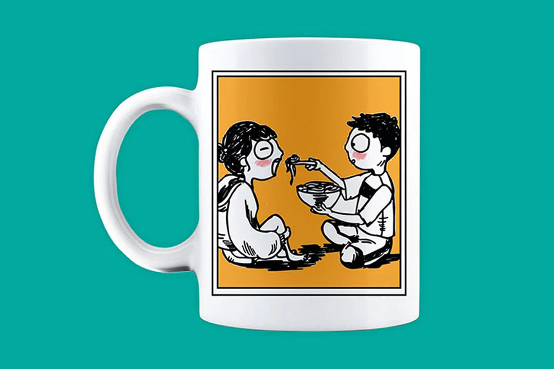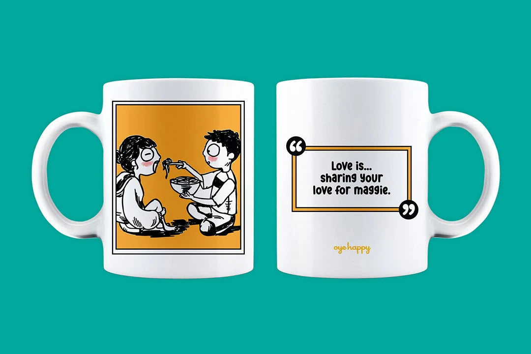 The mug has the cutest illustration of a couple with the message: Love is… sharing your love for maggi. Isn’t it just aww-dorable? Adorable enough to be the best anniversary gift or the most romantic gift ever!