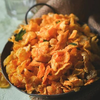 Our Makkai Chudwa combines crispy cornflakes with a zesty spice mix, offering a light yet tasty solution for your mid-day cravings.