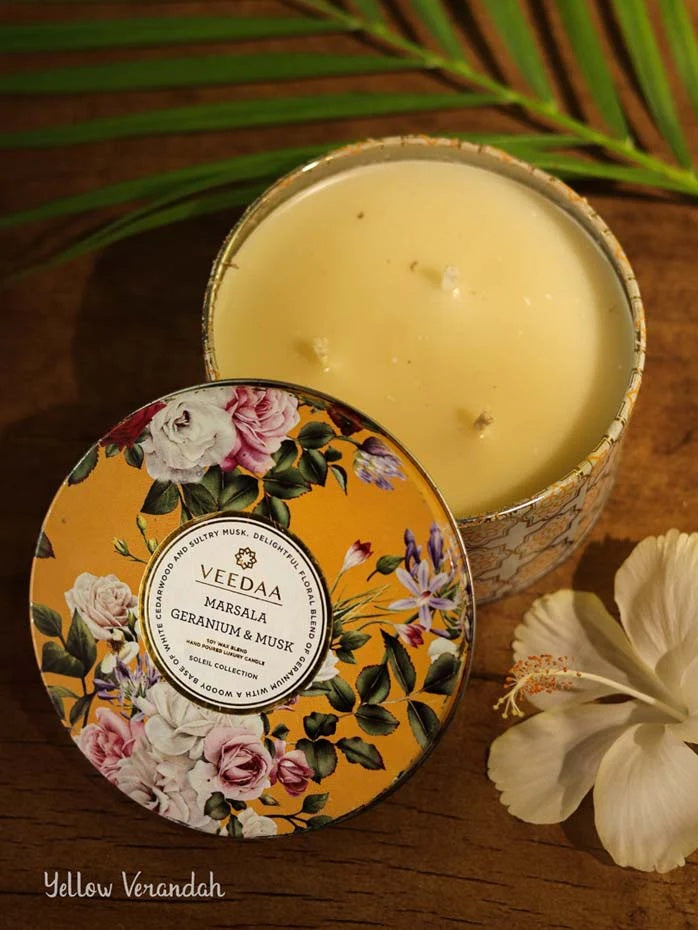 Marsala Geranium & Musk: Delightful floral blend of geranium with a woody base of white cedarwood and sultry musk.