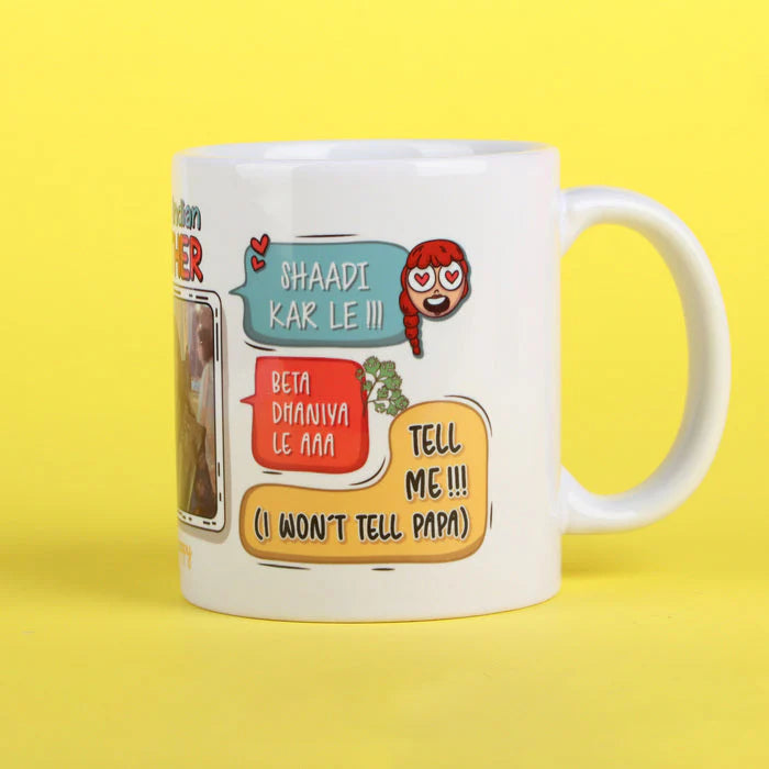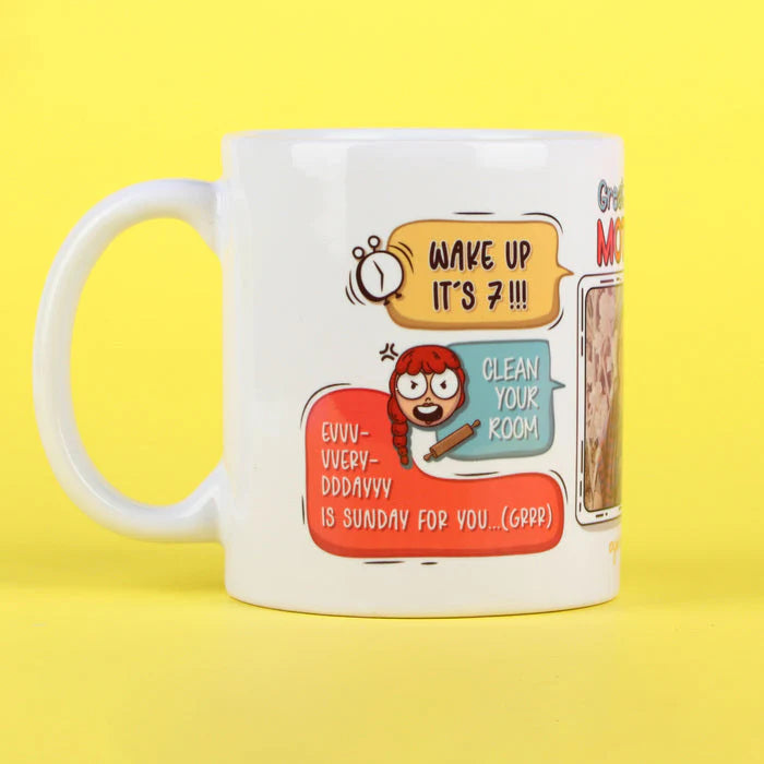Every Indian Mom has a few dialogues that are used universally. From ‘Clean your room’ to ‘Evvveryydaayy is Sunday for you,’ all of us have been victims of a few standard taunts. We’ve put together a bunch of them to create this customised mug for your beautiful mom. 1 picture is required to customise this mug.