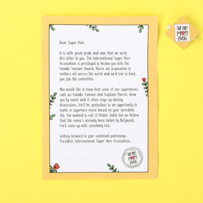 A funny and gratuitous letter from the International Superhero Association, crowning her as the Wonder Woman of the world.