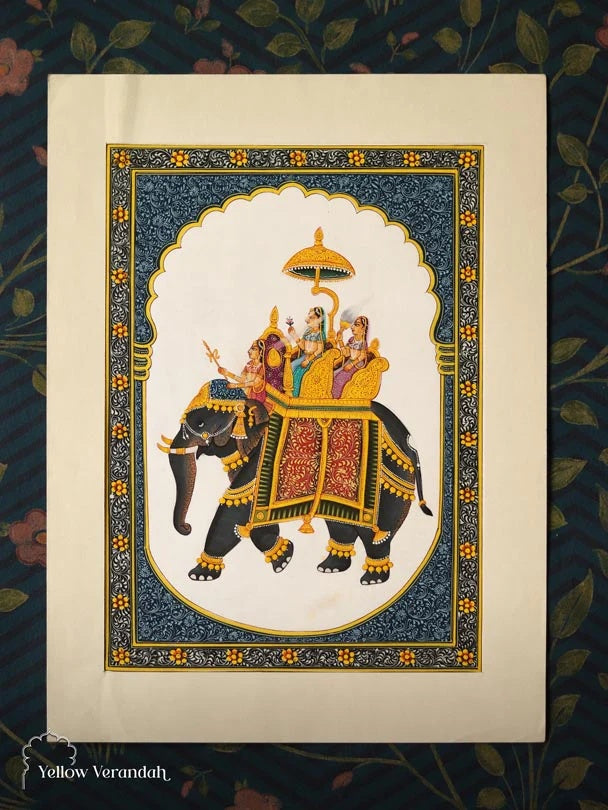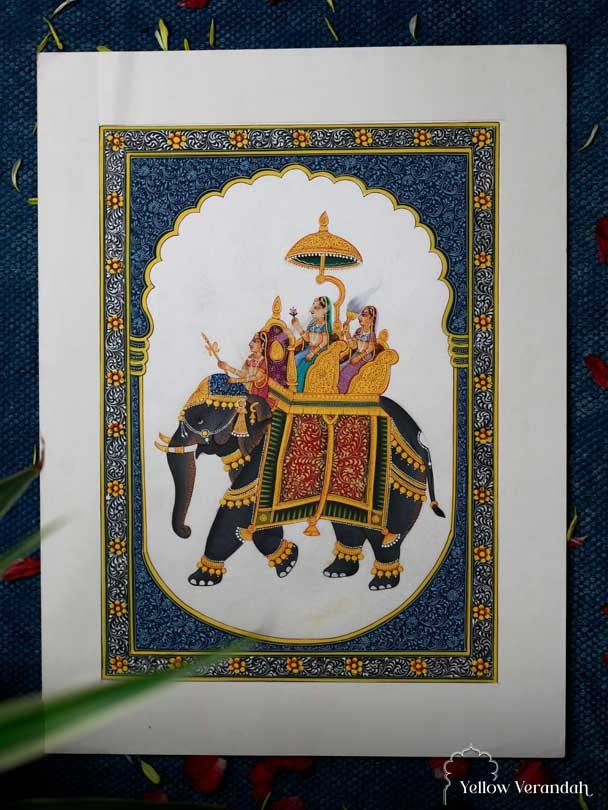 Original Mughal Painting - Elephant in miniature style, created by local artist in Jaipur, Rajasthan.