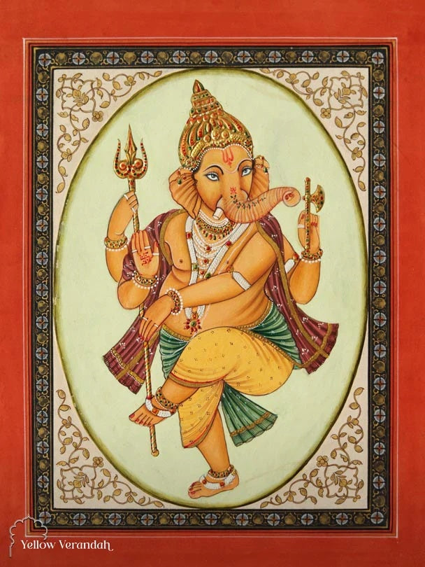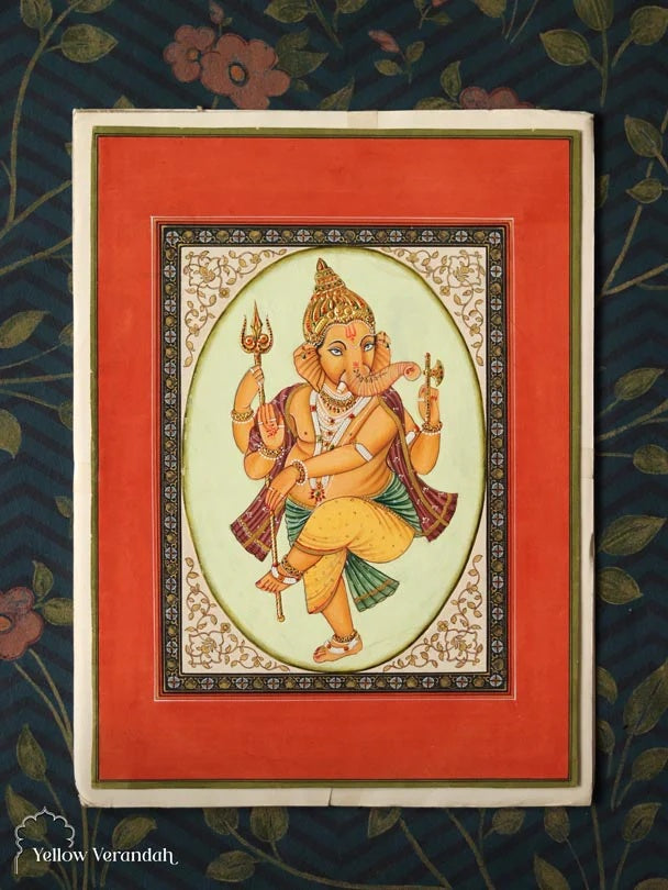 Original Pichwai Painting -Ganesha in miniature style, created by local artist in Jaipur, Rajasthan.