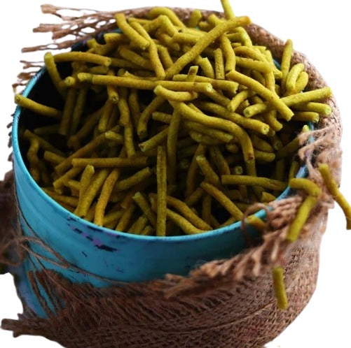 Palak Sev adds a vibrant twist to your snack time with crispy gram flour strands infused with the goodness of spinach.