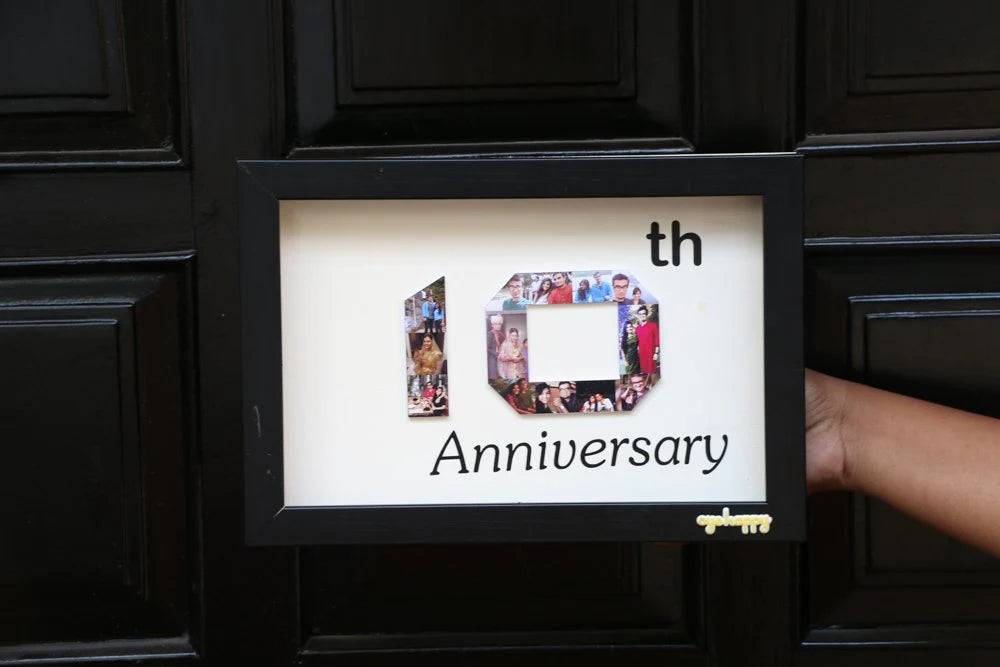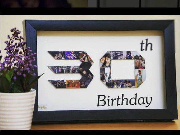 - Commemorate a special occasion with a collage of pictures of a couple or your loved one, made in the shape of the number and occasion.