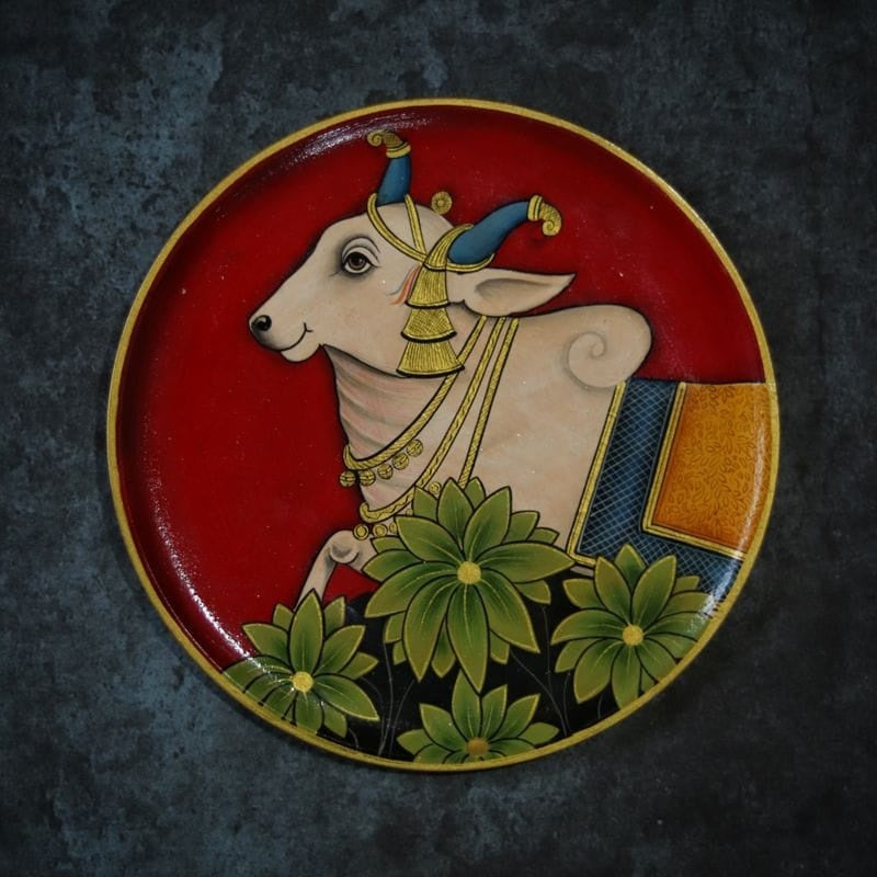 Pichwai Cow Handpainted Wall Plate - 10