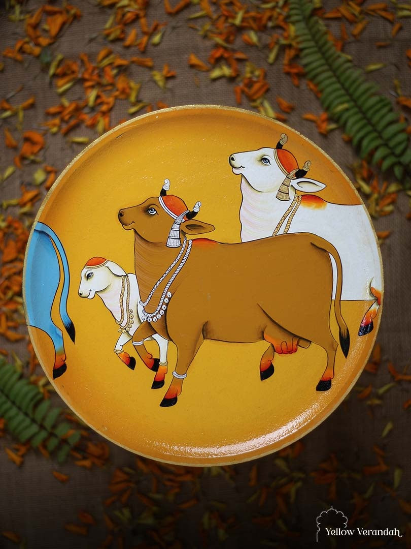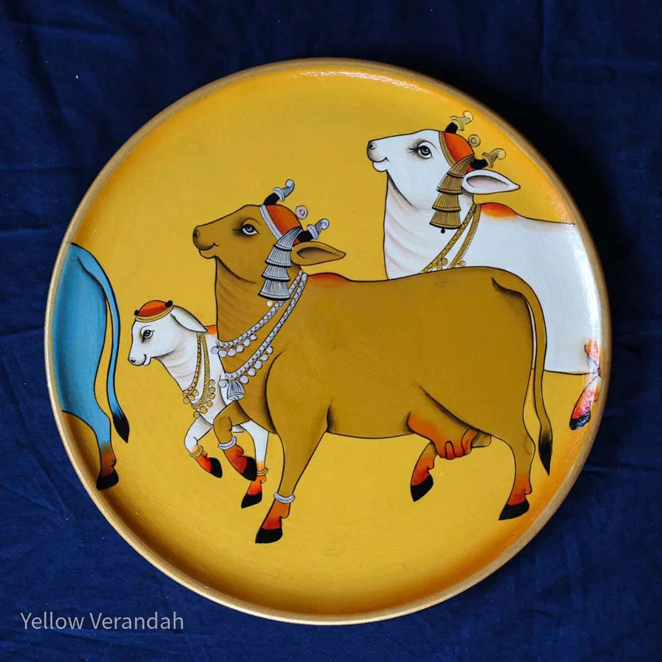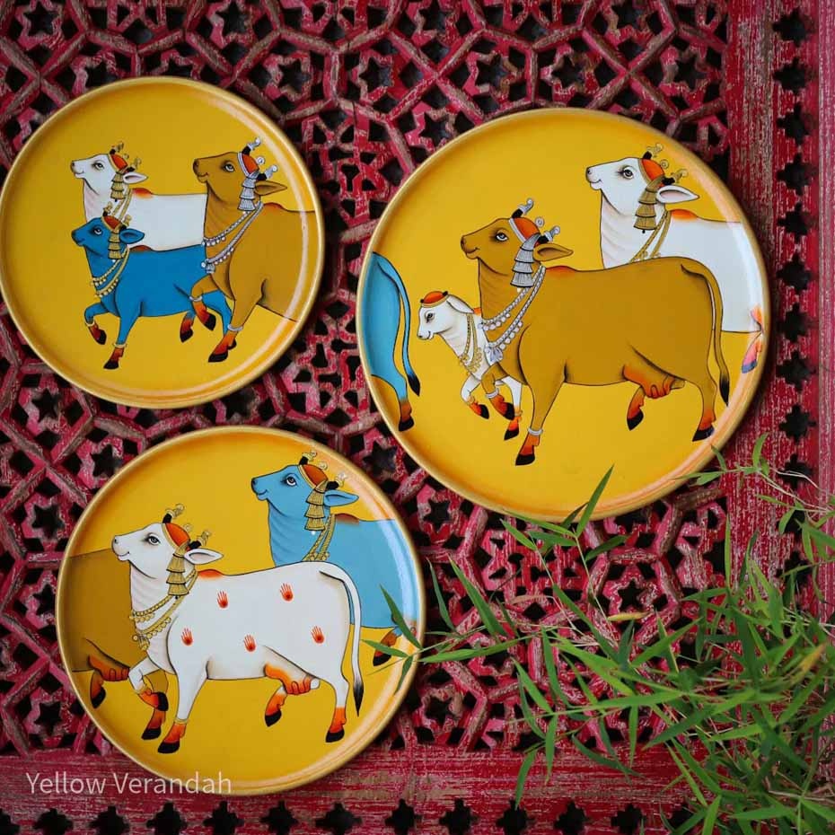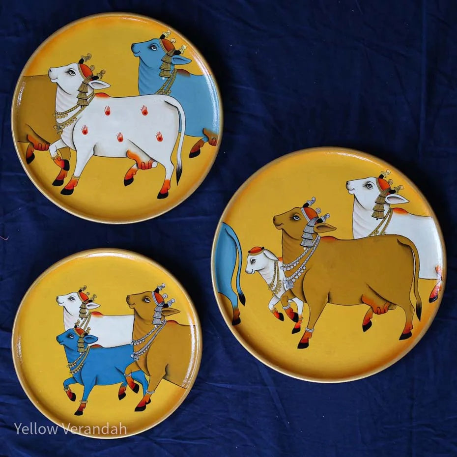 Pichwai Cows Handpainted Wall Plates - Set of 3