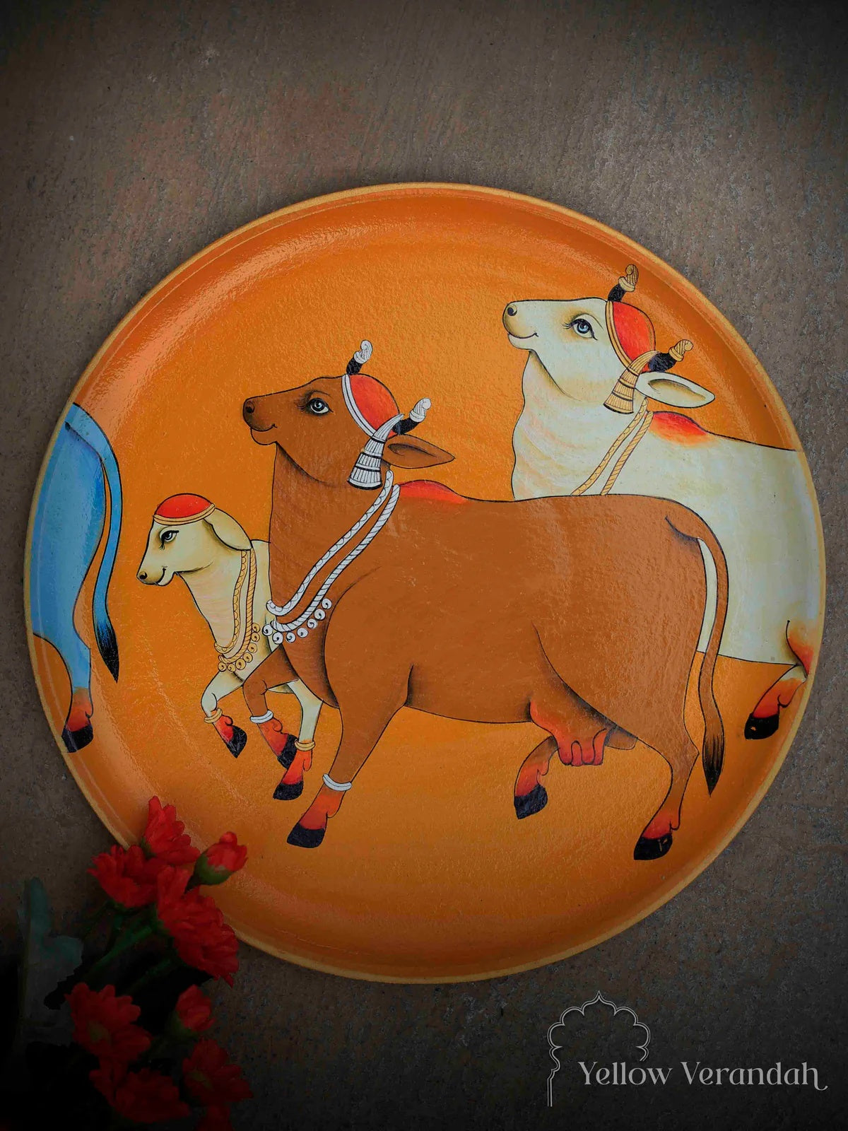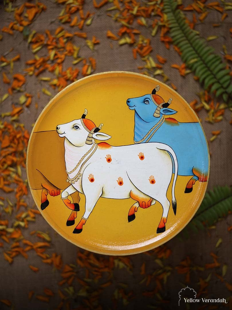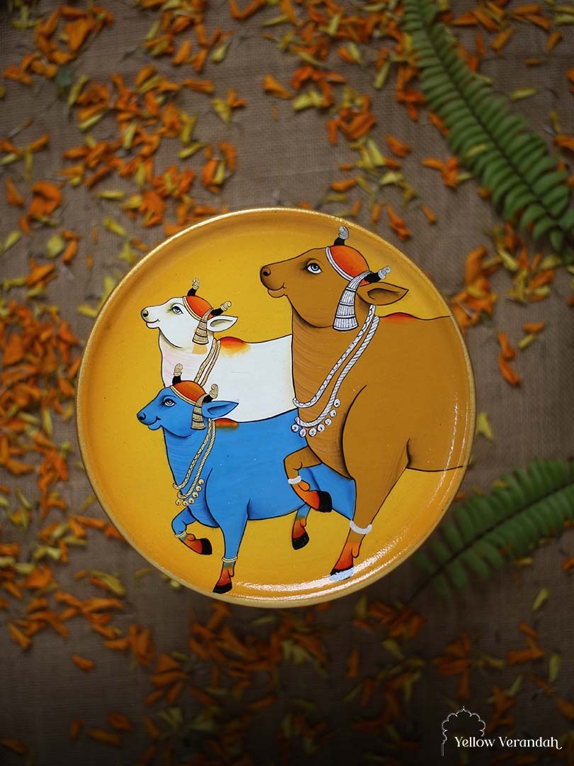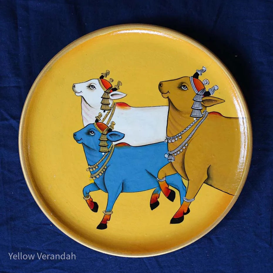 Pichwai Cows Handpainted Wall Plates - Set of 3