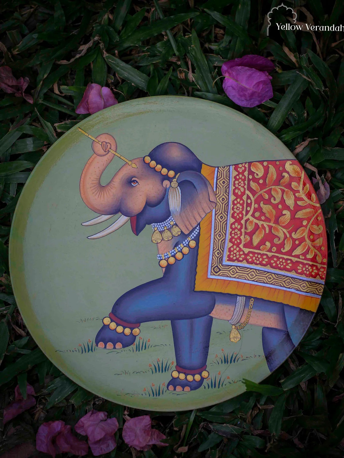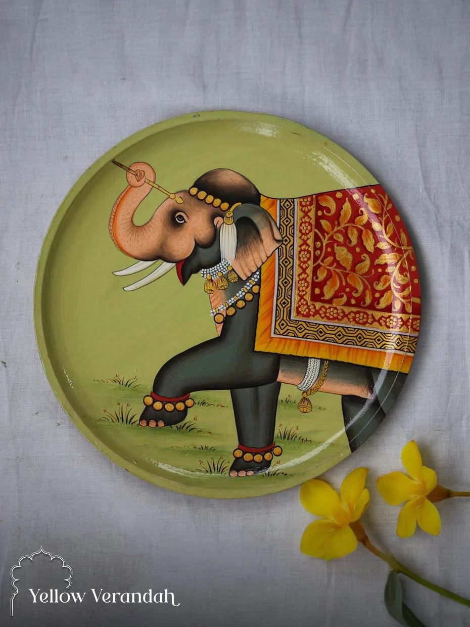 Pichwai Elephant Handpainted Wall Plate - 10"