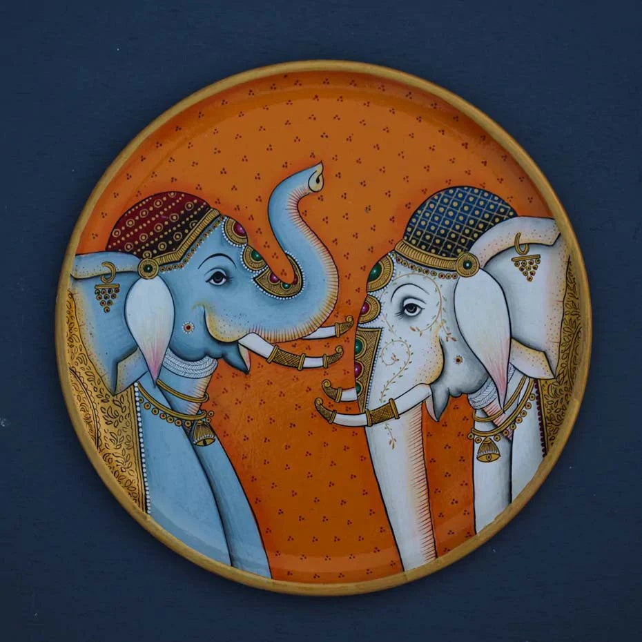 Pichwai Elephant Handpainted Wall Plate - 9"