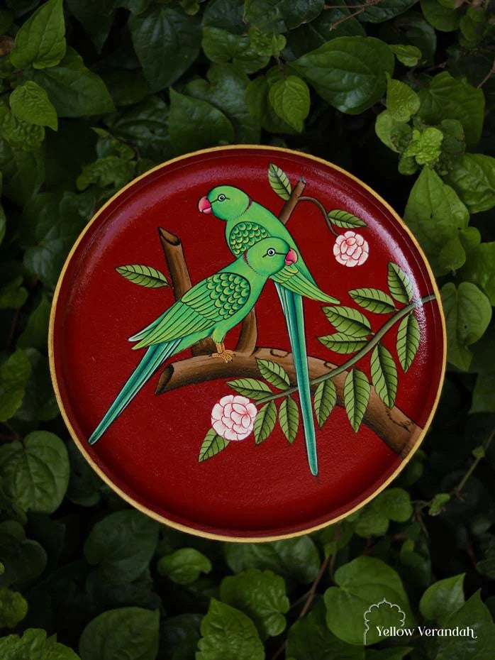 Pichwai Parrot Handpainted Wall Plate - 10"
