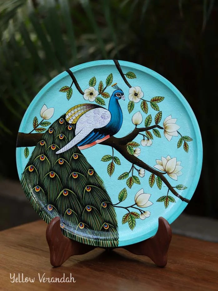 Pichwai Peacock Handpainted Wall Plate - 10"