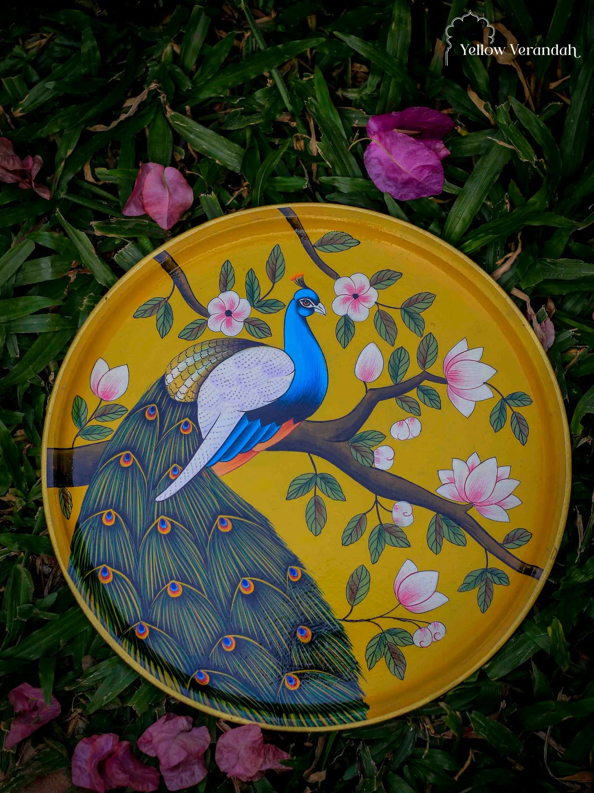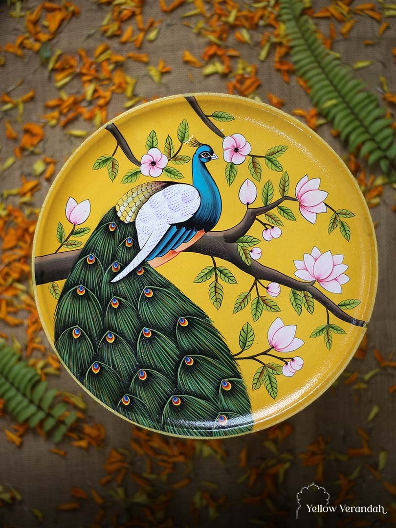 Pichwai Peacock Handpainted Wall Plate - 9"