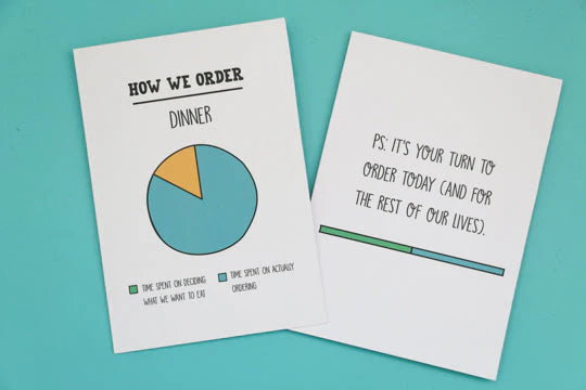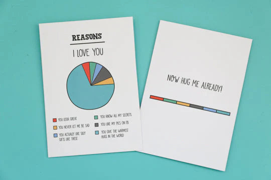 The package includes a bunch of 10 adorable cards – each designed with an adorable graph and a hilarious message to go with it. You can choose to give them to your loved one all at once or one at a time to keep him/her surprised throughout the day.